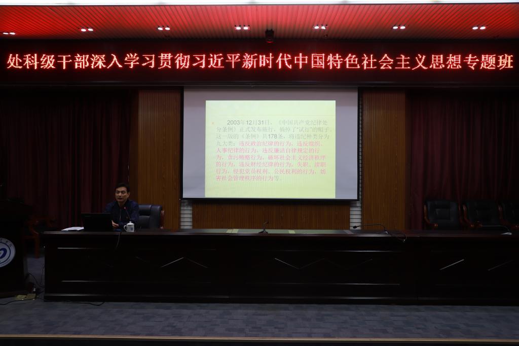 10月31日上午,永利官网处科级干部深入学习贯彻习近平新时代中国特色社会主义思想专题班第五讲如期举行。校纪检监察审计处处长陈济川作“学习新《条例》、掌握新特点、遵守新《条例》”讲座。