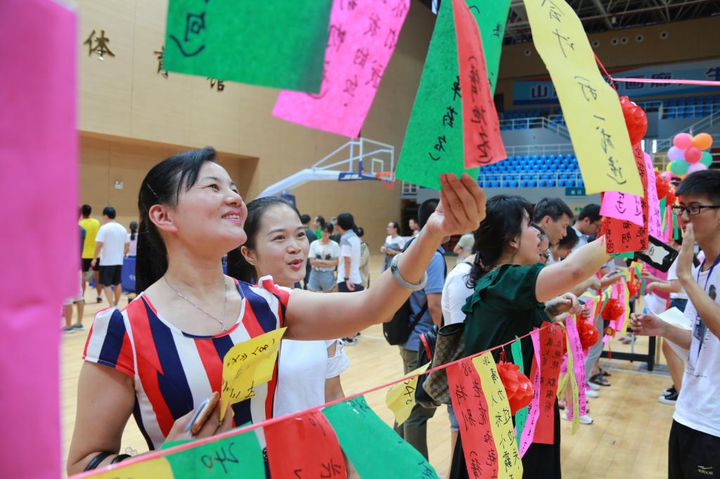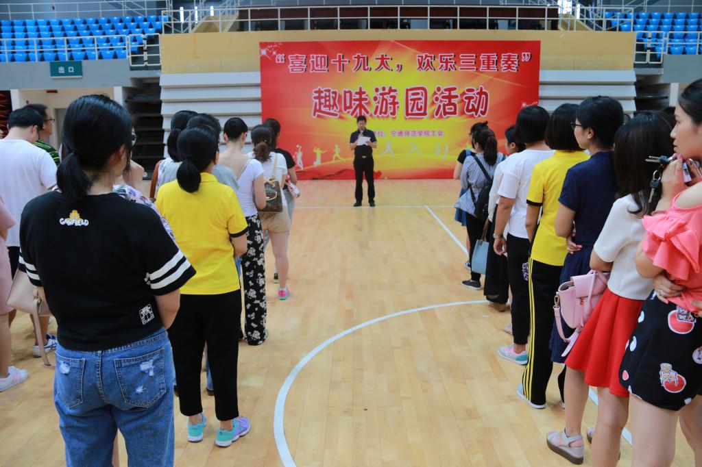 9月26日下午,由校工会主办,机关工会、经济管理学院、教育与艺术学院、经济管理学院、数理学院、体育学院等五个二级工会承办的 “喜迎十九大,欢乐三重奏”趣味游园活动在东侨校区体育馆精彩启幕。校长魏远竹副校长谢向东、副校长颜桂炀亲临现场,与广大教职工欢聚一堂,共同庆祝教师节、国庆节、中秋节。