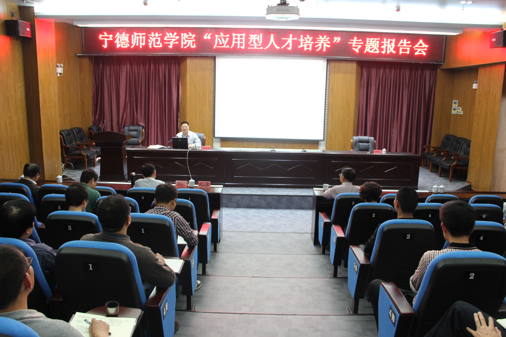 4月18日下午,yl6809永利官网“应用型人才培养”专题报告会在永利官网新校区三楼报告厅举行。福建省教育厅高教处张文东副处长应邀做了题为《明确发展定位,加快转型发展,建设应用技术型地方本科强校》的专题报告,校长林跃鑫,副校长谢向东、魏远竹出席会议,各系、各部门负责人及教师代表参加了会议,会议由谢向东副校长主持。