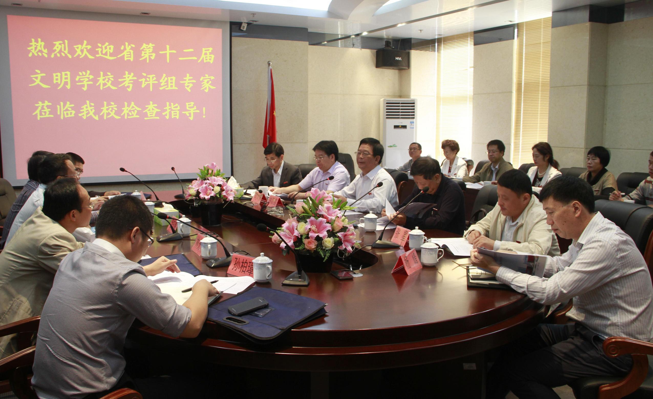 10月28日,以福建师范大学福清分校党委书记潘玉腾为组长的福建省第十二届文明学校初评考评专家组莅临永利官网实地考评。永利官网党委书记江小源、校长林跃鑫等全体校领导及相关部门负责人、各系党总支书记、评建办工作人员参加了相关评审工作。