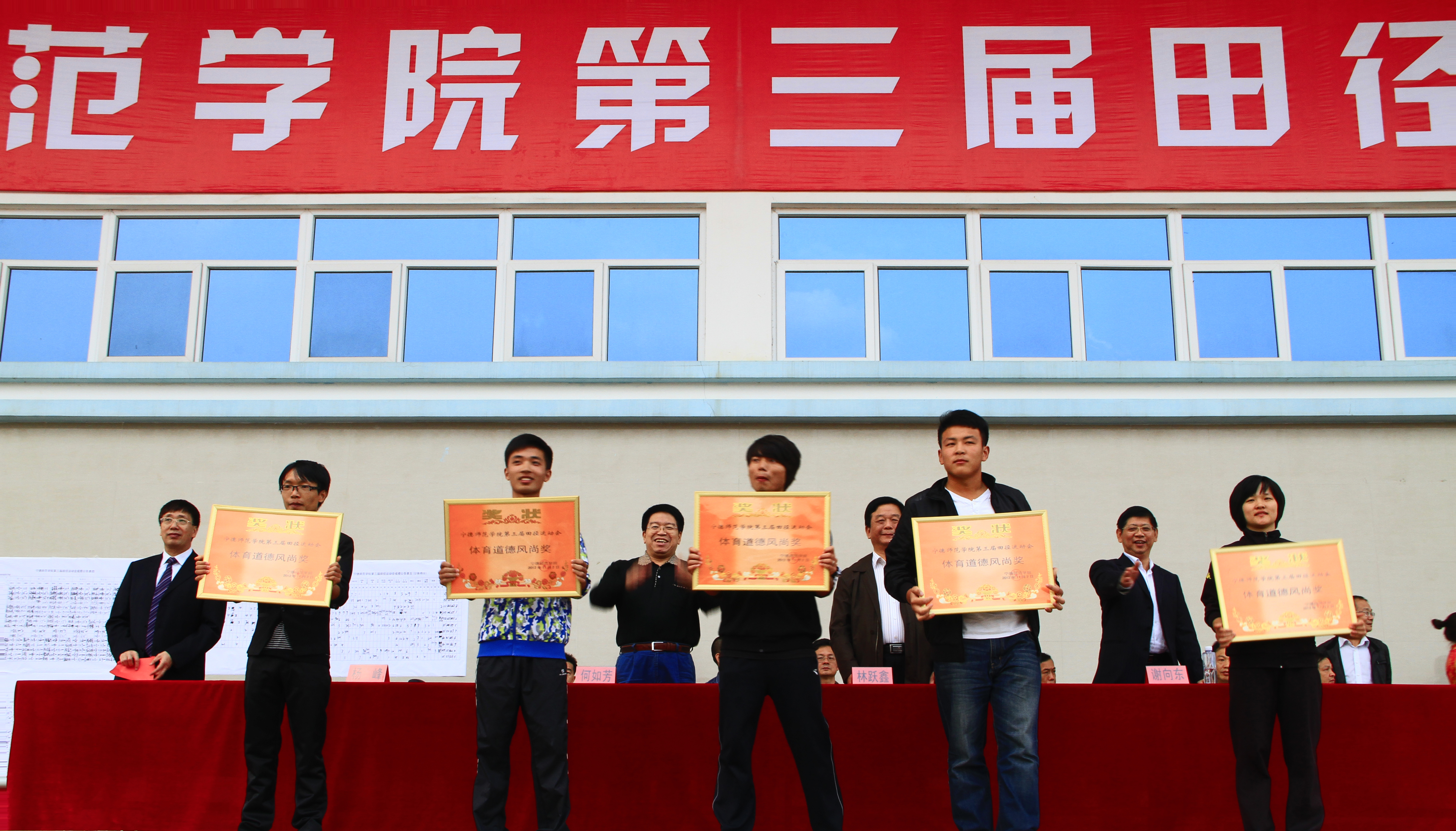 闭幕式上,校运动会总裁判长郑俊秋老师宣布了本次校运会成绩。获得团体总分前五名的学生代表队分别是数学系、物理系、外语系、教育系、化学系等代表队。获得团体总分前五名的教工代表队分别是体育系、教育系、党群口、化学系、外语系等代表队。本届校运会共有三人次打破了三项校运会记录,他们分别是物理系的宋文旸同学打破公体组男子铅球记录;物理系的翁堂扬同学打破公体组男子三级跳远记录;数学系颜奕林同学打破公体组110M栏记录。宣传部负责人赵公弼老师宣布了“道德风尚奖”的获奖单位。获得“道德风尚奖”的单位有教育系、物理系、外语系、经济管理系、中文系。