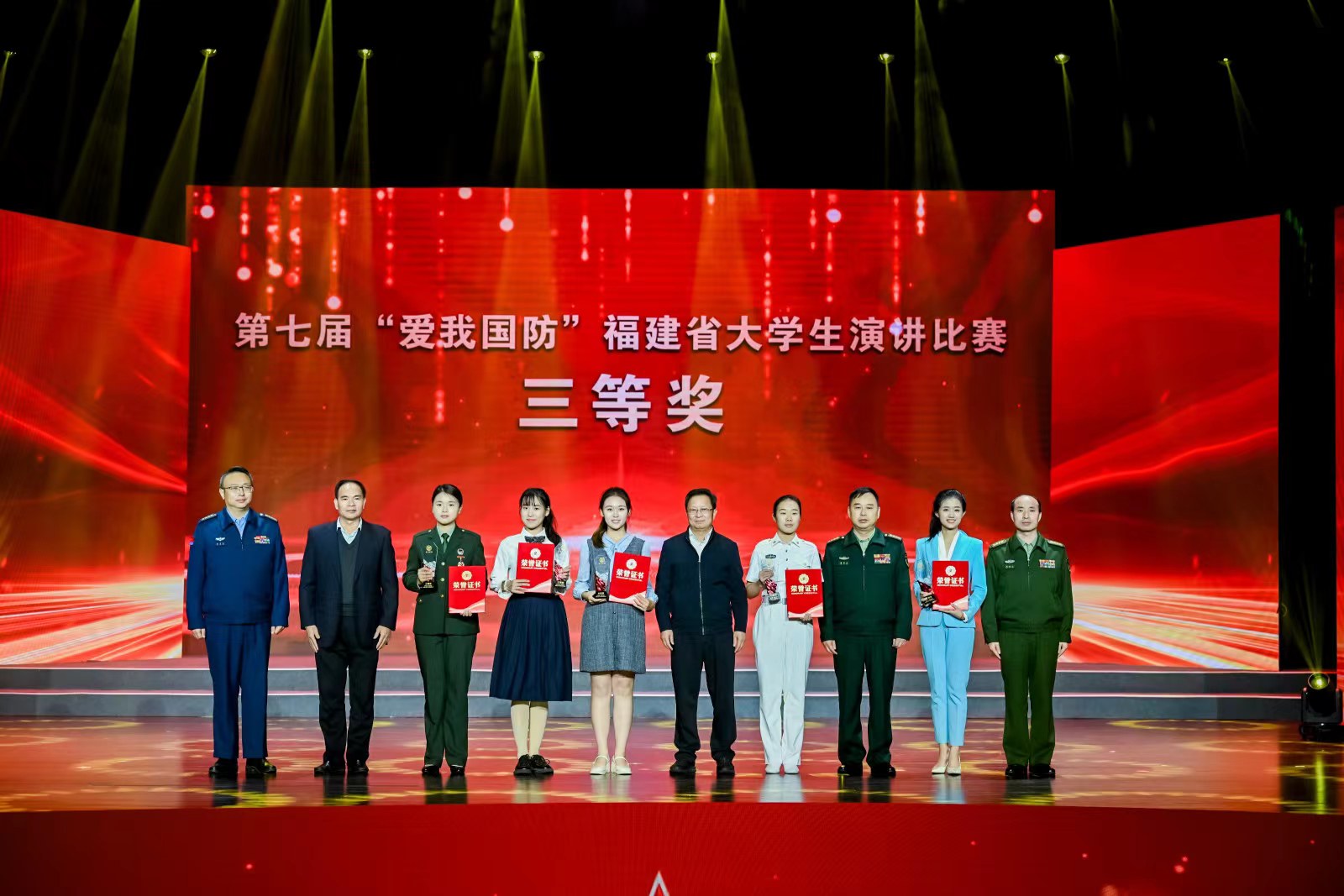 近日,以“踔厉奋发强国防,勇毅前行向复兴”为主题的第七届“爱我国防”福建省大学生演讲比赛在福建农林大学隆重举行。永利官网电子信息工程2023级郑珊妮同学代表学校参赛,获三等奖(全省第六名)佳绩,永利官网荣获组织工作奖。