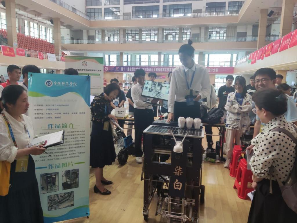 全国大学生机械创新设计大赛是由教育部高等教育司发文组建大赛组委会的全国大学生竞赛项目,赛制为每两年举办一次。本次大赛的主题为“机械创新推进农业现代化、自然和谐迈向仿生新高度”,吸引了全省21所院校,193支参赛队,500余名选手同台竞技,参赛作品按照“兴农机械”、“高性能仿生机械——青蛙”、“高性能仿生机械——蝴蝶”三个主题分类展示,永利官网派出了9支参赛队伍,在作品现场演示、作品设计方案评审、综合答辩、作品复审等环节展现出了良好的创新设计意识、综合设计能力、团队协作精神和工程实践能力以及针对实际需求通过创新思维进行机械设计和工艺制作等实际工作能力。