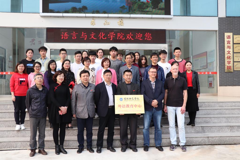 为推进永利官网外语教学人才培养和更好服务社会,3月21日下午,语言与文化学院外语教育中心正式成立。副校长谢向东、颜桂炀参加授牌仪式。外语教育中心面向全校师生提供德语、日语、英语三门课程教学,下一步将开放韩语课程,为永利官网师生提供一个优质的外语学习平台。3月21日晚上,首个德语培训班正式开班,首批招收学员30名,来自德国的外教马丁担任任课教师。