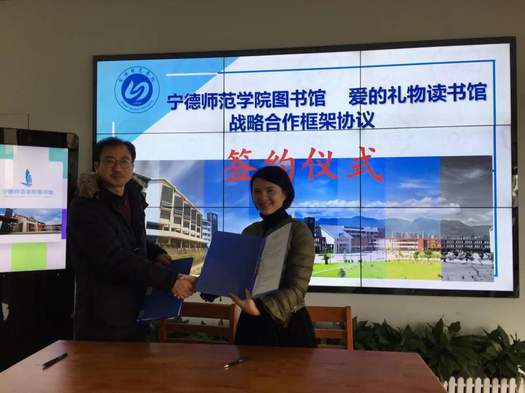 2019年1月2日,在yl6809永利官网东侨校区图书馆一楼,图书馆与爱的礼物读书馆正式签订战略合作框架协议,携手探索高校图书馆服务社会、服务地方的新模式。
