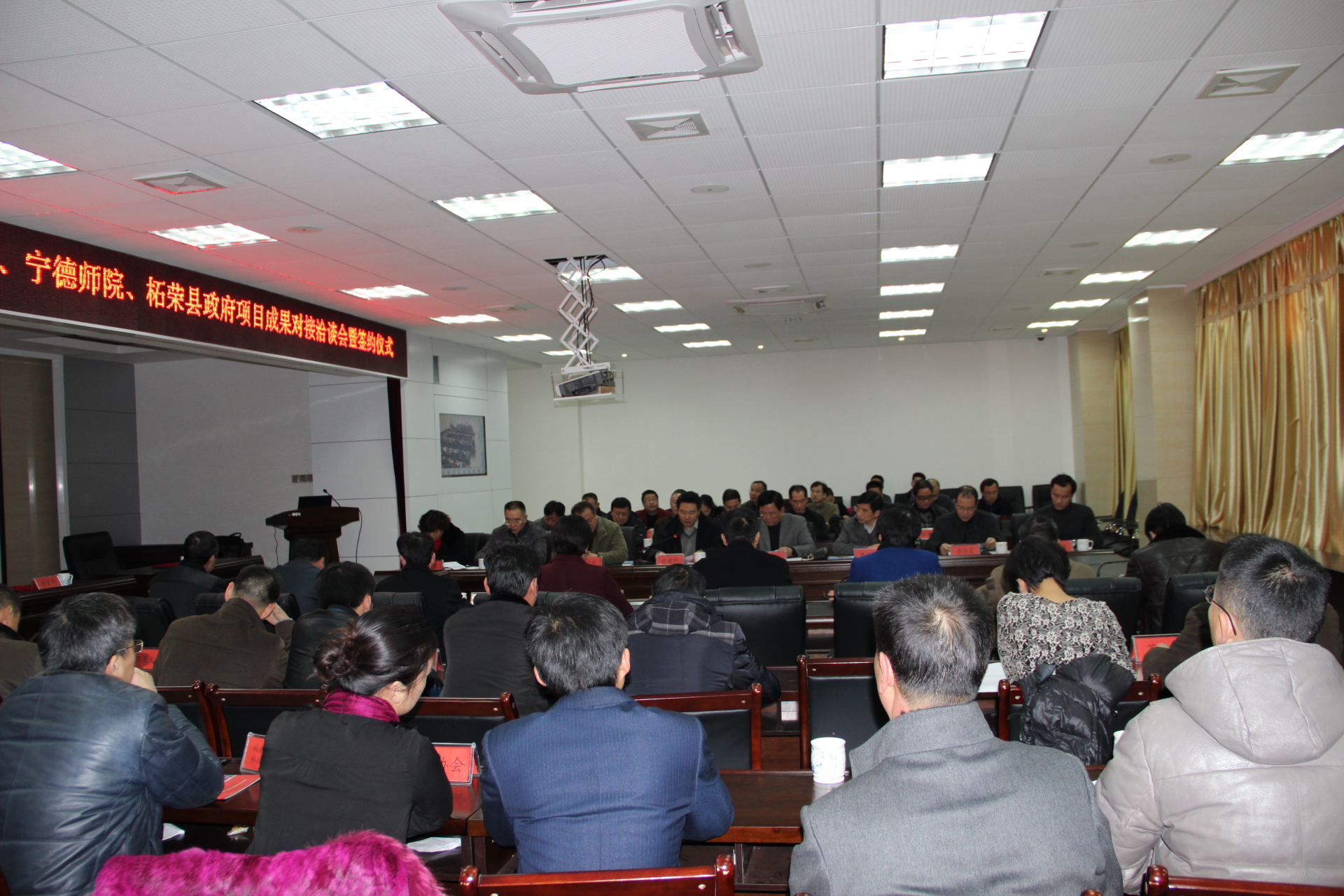 12月30日,永利官网林跃鑫校长及魏远竹副校长陪同省科协党组成员、副主席游建胜,省科协学会学术部部长周健林、副部长丁红萍等省科协领导,并带领永利官网有关部门及项目负责人等一行28人赴宁德柘荣县举行yl6809永利官网与柘荣县项目成果对接洽谈会暨签约仪式。洽谈会暨签约仪式在柘荣县政府三楼百人会议室举行。中共柘荣县委薛理朝书记,县人民政府冯静县长、胡宁副县长及县直有关部门和企业负责人等三十多人出席。签约洽谈会由胡宁副县长主持。