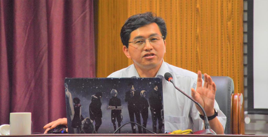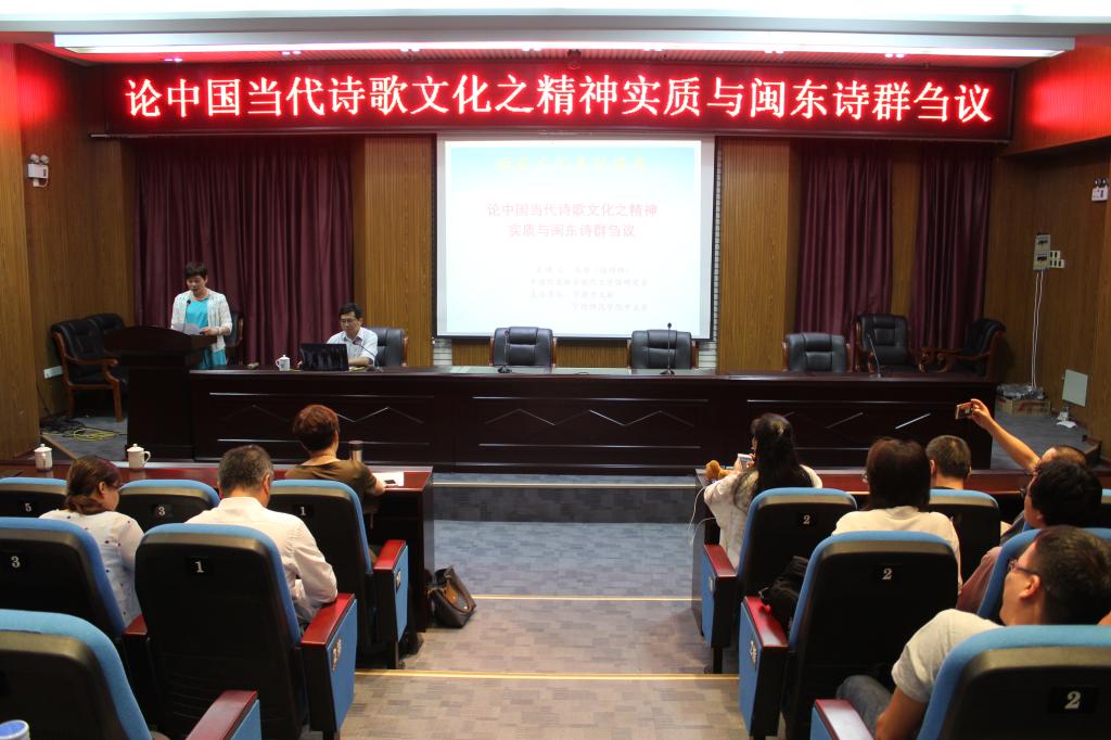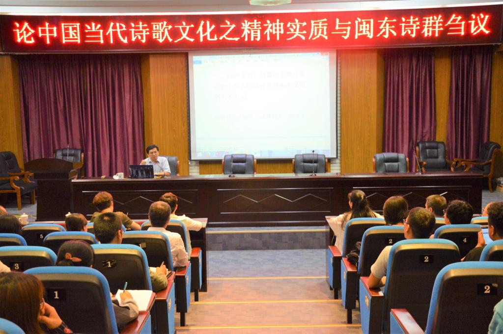 2017年6月17日晚7时,由宁德市文联和宁德师院中文系联合主办的闽东文化研究系列讲座第四场于行政楼三楼学术报告厅开讲。本次讲座主题为“论中国当代诗歌文化之精神实质与闽东诗群刍议”,由中国作家协会现代文学研究馆研究员李伟锋(笔名北塔)主讲,宁德市文联副主席叶玉琳主持,中文系师生参加。